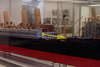 Although Stieglitz described "an inclining funnel" in the scene, photographs and models of the ship (see below) show that this object was actually a large mast to which booms were fastened for loading and unloading cargo. One of the booms is shown at the very top of the picture.