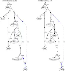 Full genome studies revealed that Tibetans and other high-alltitude East Asians formed from two divergent Ancient East Eurasian lineages in Eastern Asia, specifically a lineage representing the Paleolithic population of the Tibetan Plateau, and a lineage associated with Ancient Northern East Asians. The Paleolithic Tibetan lineage was found to be distinct from other deep lineages such as Ust'-Ishim, Hoabinhian/Onge or Tianyuan, but forming a clade with them to the exclusion of other Eurasians. The Northern East Asian lineage can be represented by Neolithic Yellow River farmers, which are associated with the spread of Sino-Tibetan languages. Modern Tibetans derive up to 20% from Paleolithic Tibetans, with the remaining 80% being primarily derived from Yellow River farmers.[22] The formation of the present-day Tibetan gene pool dates back at least 5,100 years BP.[23]