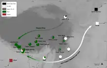 Northeastern Tibetans display additional geneflow from a Yellow River farmers-like population c. 4,700 years ago, resulting in the formation of a "Tibetan cline".[23] Modern Tibetans display genetic continuity to ancient samples from Nepal, with their genetic diversity having been reduced compared to 'Early Ancient Tibetans' suggesting low to none geneflow from outside groups since c. 3,500 years ago.[23] Subsequent internal geneflow resulted in "a northeastern plateau ancestry associated with the northeast cluster, a southern plateau ancestry associated with the south-southwest cluster, and a southeastern plateau ancestry associated with the southeast-central cluster".[23]