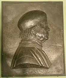 His portrait in profile, bearing the signature of Baldassare d'Este (natural son of Niccolò III d'Este) and the date 1499, was in the collection of Vittorio Cini at Palazzo Loredan Cini.[2]