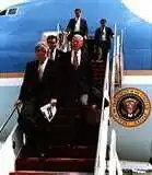 The White House Travel Office was responsible for getting the White House press corps into place, including landing before Air Force One in order to get photo opportunities such as this one.