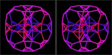Two Schlegel diagrams, centered on truncated tetrahedral or truncated octahedral cells, with alternate cell types hidden.