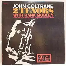 Two Tenors is an album credited to jazz musicians John Coltrane and Hank Mobley, released in 1969 on Prestige Records, catalogue 7670. It is a reissue of Prestige 7043 Informal Jazz by Elmo Hope, released in 1956. As Coltrane's fame grew during the 1960s long after he had stopped recording for the label, Prestige assembled varied recordings, often those where Coltrane had been merely a sideman, and reissued them as a new album with Coltrane's name prominently displayed. In this case, by 1969 Hope had become a far less marketable figure than Coltrane and Mobley, hence the redesignation of the LP.