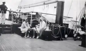 A photo which the National Oceanic and Atmospheric Administration assesses as probably showing a dependents cruise aboard USFS Grampus ca. 1915.