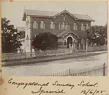 The site, opposite the court house and police station had previously been granted to the Ipswich Town Council as a site for the erection of the Town Hall, however this did not proceed and in 1893 was proclaimed a town lot. Plans for the new Sunday school were ambitious; however the work of the Sunday school was considered important, given the secular nature of the state's education system and their enrolment substantial. In 1895, the Congregational Sunday School had 429 scholars and fifty-one teachers under the superintendence of James Clarke Cribb.[1]