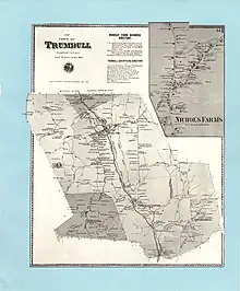 The first individuals to own land in Trumbull were among the original founders of the Stratford settlement, namely Benjamin Beach, Zachariah Bostick (Bostwick), Richard Booth, Ephraim Booth, Paul Brinsmaid, John Curtiss, Benjamin Curtiss, Mr. Joseph Curtiss, Captain William Curtiss (Curtice), Ebenezer Curtiss, Israel Curtiss, Zachariah Curtiss, Joseph Fairchild, Elder Philip Groves (Graves, Grouse), Joseph Hawley, Ephraim Hawley, Captain John Hawley, Samuel Hawley, Edward Hinman, Lt. Joseph Judson, Sgt. Jeremiah Judson, Isaac Judson, John Judson, Thomas Lake, Isaac Nichols, Caleb Nichols, Abraham Nichols, Samuel Ufford (Uffoot) and Reverend Zechariah Walker.[28] The first families to reside permanently in Trumbull were the Beach, Beardsley, Blakeman, Booth, Bostick, Brinsmade, Clarke, Curtiss, Edwards, Fairchild, Hawley, Hinman, Hubbell, Judson, Lake, Lewis, Middlebrook, Nichols, Peet, Plumb, Seeley, Sherwood, Thompson, Uffoot, Walker and Wildman families.