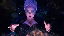 On June 28, 2019, it was announced that Melissa McCarthy was in talks to play Ursula in the live-action remake of The Little Mermaid, directed by Rob Marshall.[28] On February 18, 2020, McCarthy confirmed her casting as the villainess during an interview on The Ellen DeGeneres Show: “I play Ursula, the sea witch. It is so fun, we're just in rehearsals. It's been an absolute blast. Stepping into the world of Rob Marshall, it's like a fever dream, I just went to London for a week, I was like, ‘I don't get to go to dance camp for a week.’ All day he's like, ‘Do you want to slide down this 40-foot clamshell?’ I'm like, ‘Yes! Of course, I do. What are you, crazy?’ It's been wildly creative.”[29] In December 2020, McCarthy stated that she would hopefully begin filming the movie in January 2021.[30] McCarthy eventually began filming her scenes in April 2021.[31] Later that year, McCarthy described the experience of playing Ursula as "glorious" and adding, "The world of Disney and (director) Rob Marshall is a world that I wish everyone could experience because it's so creative, kind and lovely. Going to singing class every day ... I got to record with an orchestra, which is a mind-bender for someone who is not a singer ... but it was such a fun process. It's going to be incredible ... To me, Ursula is everything. She's one of my absolute favorite villains so to play her was delicious."[32]