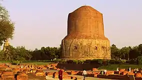 The Dhamekh Stupa in Sarnath is where Gautama Buddha first taught the Dharma, and where the Buddhist Sangha came into existence through the enlightenment of Kondanna.