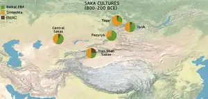 Nearby Saka cultures were the Tagar Culture of the Minusinsk Basin, and the Pazyryk Culture in the Altai mountains.[1][2] To the east was Slab-grave culture.