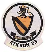VA-23, nicknamed the Black Knights, was an Attack Squadron of the U.S. Navy, established as Reserve Fighter Squadron VF-653 in December 1949 at NAS Akron, Ohio. The squadron relocated to NAS Alameda on 16 April 1951. It was redesignated VF-151 on 4 February 1953, and as VA-151 on 7 February 1956. It was finally designated as VA-23 on 23 February 1959, and moved to NAS Lemoore on 30 September 1961. The squadron was disestablished on 1 April 1970.[1]