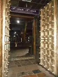 The Nayanmars (Shaiva saints) Appar and Tirugnanasambandar could not enter the locked temple. At this, on Tirugnanasambandar's request, Appar sang devotional hymns praising Shiva, after which the gates opened. Tirugnanasambandar's devotional hymns locked the gates again.[6][25] Vedaranyeswarar is revered in the 7th century Tamil Shaiva canonical work, the Tevaram, written by Tamil saint poets known as the nayanars and classified as Paadal Petra Sthalam. It is the only temple to have found mention in all the seven Thirumurais. The temple is famed for the legend between Appar and Sambandar when the former sang to open the door while the latter sang to close the door. It is believed that Sundarar, another nayanar, visited the temple along with Chera king Cherama Perumal Nayanar.[8] The western entrance of the temple houses the image of elephant god named Virahatte Vinayaga who is believed to have driven away the ghosts killed by Rama.[26] Mahodya Amavasya is a religious occasion occurring every year during the full moon day of Tamil month Thai. During the occasion Mahodaya Snanam, having dip in four water bodies in Vedaranyam, namely the pond close to the temple, Kodiayakarai beach, Vedaranyam sea and finally the Manikarnika Tank inside the temple. During the occasion, hundreds of devotees throng the temple where special rituals are performed.[27]