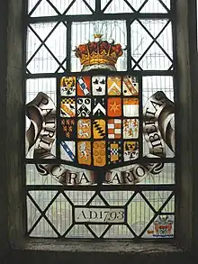 Coat of arms of Jacob Pleydell-Bouverie, 2nd Earl of Radnor, dated 1793, in the east window of the chancel of St. Andrew's parish church, Shrivenham