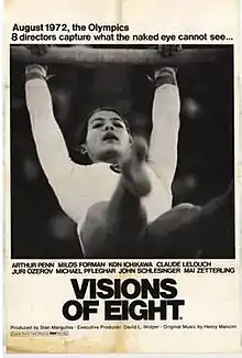 Visions of Eight is a 1973 American documentary film offering a stylized look at the 1972 Summer Olympics. Produced by Stan Margulies and executive produced by David L. Wolper, it was directed by eight directors. It was screened out-of-competition at the 1973 Cannes Film Festival.[1] It was later shown as part of the Cannes Classics section of the 2013 Cannes Film Festival.[2] Some visuals of the Munich stadium from the documentary were used in Without Limits.[3]