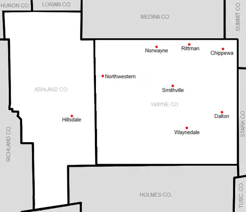 The Wayne County Athletic League is an OHSAA athletic conference whose eight members are from Wayne County and Ashland County, Ohio. The following are currently members: