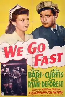 We Go Fast is a 1941 American comedy action film directed by William C. McGann and written by Thomas Lennon and Adrian Scott. The film stars Lynn Bari, Alan Curtis, Sheila Ryan, Don DeFore, Ernest Truex and Gerald Mohr. The film was released on September 19, 1941, by 20th Century Fox.[1][2][3]