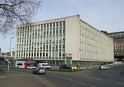 The first meeting of the shadow authority was held on 30 April 1973 at Council House, Birmingham.[3] Meetings were held at Council House throughout the county council's existence.[4] The county council established its main administrative offices at County Hall, 1 Lancaster Circus, in central Birmingham. Since the county council's abolition in 1986, County Hall has been occupied, but not as its headquarters, by Birmingham City Council.[5]