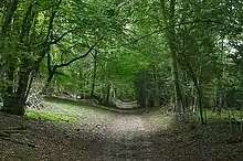 At this time Hazlitt would frequently retreat for long periods to the countryside he had grown to love since his marriage, staying at the "Winterslow Hut", a coaching inn at Winterslow, near a property his wife owned.[69] This was both for solace and to concentrate on his writing. He explained his motivation as one of not wanting to withdraw completely but rather to become an invisible observer of society, "to become a silent spectator of the mighty scene of things ... to take a thoughtful, anxious interest in what is passing in the world, but not to feel the slightest inclination to make or meddle with it."[126] Thus, for days on end, he would shut himself away and write for periodicals, including the recently re-established (1820) London Magazine, to which he contributed drama criticism and miscellaneous essays.[127]