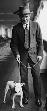 He held the title for two years, successfully defending it four times.[3] In 1914, he sailed to London to face the British lightweight champion, Freddie Welsh. Welsh won the 20-round match by decision.[3][5]