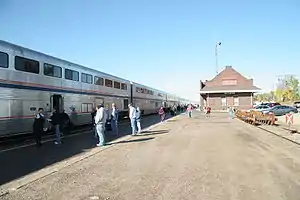 Williston station is a train station in Williston, North Dakota, served by Amtrak's Empire Builder line. The brick station was built in 1910 by the Great Northern Railway[4] and is located at the southern end of Williston's downtown. An interior and exterior restoration, begun in 2010 and costing almost $2 million, has returned the station to its original look.[4]