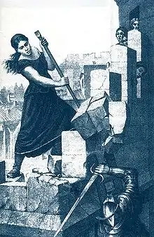 - 1572: In defense of the city during a siege of Haarlem by Spanish troops, which lasted from December 1572 to 1573, Kenau Simonsdochter Hasselaer (1526–1588) was described by a source as an unusually fearless woman who worked night and day carrying earth to the city walls to rebuild the defense line.[63]