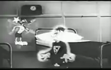 Donating scrap metal was another means by which Americans could help support the war effort. Scrap Happy Daffy was a short film that encouraged such patriotic acts. Daffy defends his scrap yard against a metal-eating Nazi goat sent by an irate Adolf Hitler. The cartoon asks citizens to donate to the war effort by listing items which can be given to scrap yards around the country. It also educates citizens about Hitler's spies and spoilers who try to hinder such war efforts.[8] Other films pleading for scrap metal include Ding Dong Daddy[9] and Foney Fables.[10] Pluto and Minnie Mouse contributed to the war effort by encouraging civilians to recycle their cooking grease so it could be used for making explosives in Out of the Frying Pan Into the Firing Line.[11]