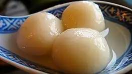 Yuanxiao (Chinese: 元宵; pinyin: yuánxiāo; lit. 'first night') are dumplings of glutinous rice flour, filled with sesame or peanut powder and sugar, or sweet red bean paste, eaten in a soup during the Lantern Festival, the fifteenth day of the Chinese New Year. They are similar to tangyuan, but are traditionally prepared in a basket, and served mainly in Northern China.[1][2]