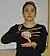 - Posture the nondominant hand in the “flat B” handshape in front of the center of the chest, nondominant palm facing up. Posture the dominant hand in the “open A” handshape with the dominant hand at the palm of the nondominant hand, thumb of the dominant hand pointing down.