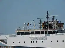 - (nautical) An elevated platform above the upper deck of a mechanically propelled ship from which it is navigated and from which all activities on deck can be seen and controlled by the captain, etc; smaller ships have a wheelhouse, and sailing ships were controlled from a quarterdeck.