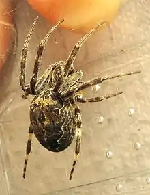- a large orb weaver often found on bridges and near water (Larinioides sclopetarius).