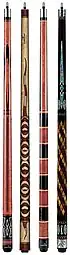 - (sports, billiards, snooker, pool) A straight tapering stick used to hit the balls in various games.