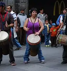 A street musician playing a djembe in Mexico City, 2010