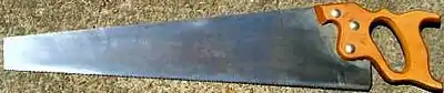 - A tool with a toothed blade used for cutting hard substances, in particular wood or metal.