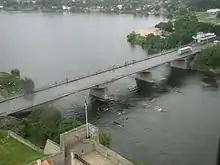 - A construction spanning across a waterway, road, etc. allowing the flow of traffic.