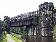 - A bridge built obliquely from bank to bank, as sometimes required in railway engineering.