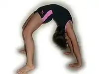 - (sports, martial arts) bridge position, backbend (position of the body in which the raised back rests on the hands (or nape) and feet touching the floor)