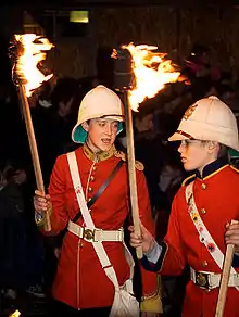 - A stick with a flame on one end, used chiefly as a light source; a similarly shaped implement with a replaceable supply of flammable material.
